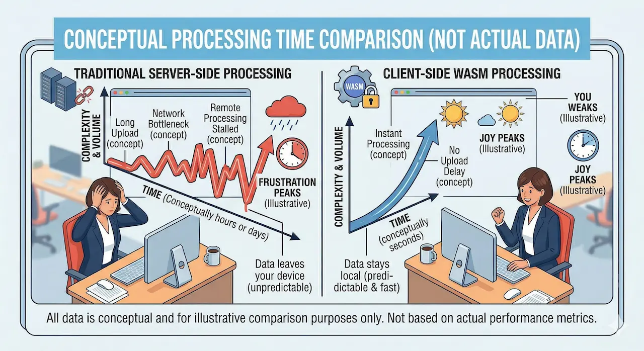 Zero waiting. Zero exposure risk. No installation required. This is the practical value WASM brings to everyday file work.